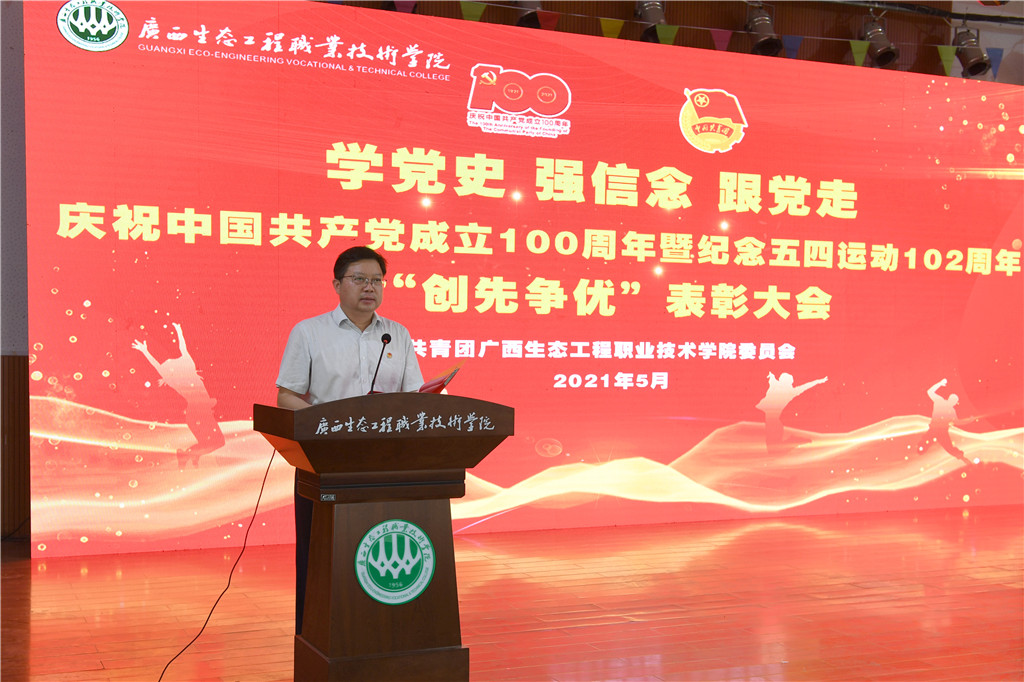 5月11日下午,学校团委在东区食堂三楼举行了庆祝建党100周年暨五四运动102周年2020年度五四创先争优表彰活动。学校党委书记李振秋、党委副书记王汉奇、副校长杨燕红、副校长潘梅勇、校长助理石荣胜,相关职能部门负责人,二级学院分管学生工作领导和团委书记及团员代表近400人参加了表彰活动。