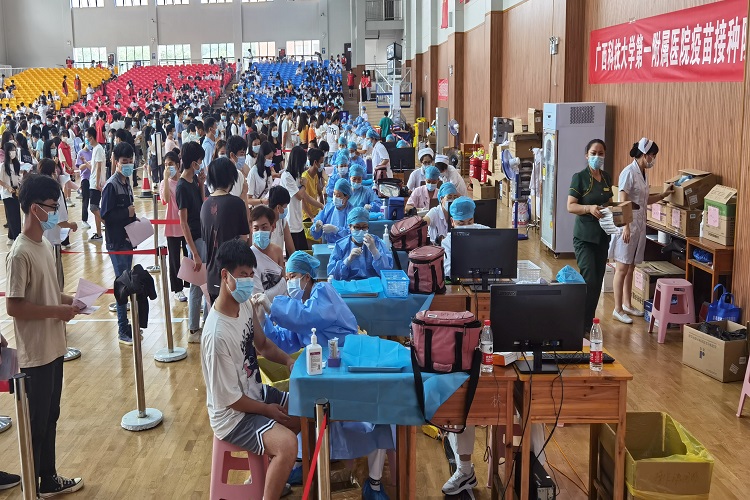 为贯彻落实中央和自治区的决策部署,推动党史学习教育走深走实,把“学党史”和“办实事”紧密结合,根据国家和自治区重点行业人群新冠病毒疫苗接种工作要求,pg娱乐强化管理,全面统筹部署,5月13日-14日,柳钢医院、广西科技大学第一附属医院到pg娱乐开展为期两天的新冠疫苗第一针接种工作,进一步筑牢pg娱乐师生免疫屏障,保障师生生命安全与身体健康。柳州市柳北区区长张联松、市卫健委副主任胡学林,柳北区卫健局局长潘新胜、校长助理石荣胜等相关领导到现场督导接种工作。