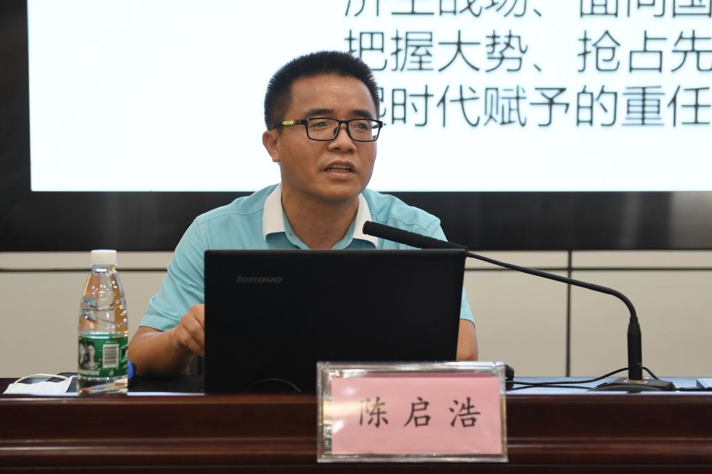 陈启浩部长首先传达了习近平总书记在中国科学院第二十次院士大会、中国工程院第十五次院士大会、中国科协第十次全国代表大会上,坚持把科技自立自强作为国家发展的战略支撑的讲话精神,并从“向高水平科技自立自强迈进对科学道德和学风建设提出新要求”、“问题及现状昭示科学道德和学风建设永远在路上”和“推动科学道德和学风建设要在抓常抓长抓细抓实上下功夫”等三个方面展开深入浅出的讲解。