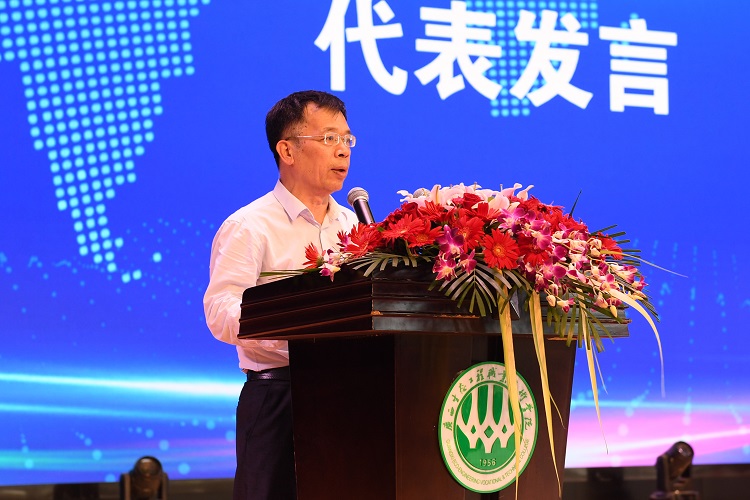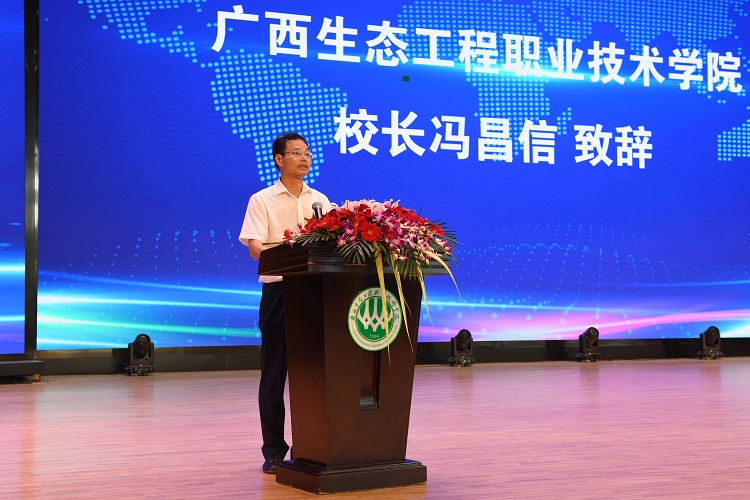 学校校长冯昌信致辞,他指出在自治区林业局、自治区教育厅的正确指导和关怀帮助下,学校深入实施以建设高水平专业群和生态特色专业为主的“鲲鹏计划”,走“生态专业化、专业生态化”的特色发展之路;实施以打造标志性成果为主的“珠峰计划”,扎实推进“双高”建设和“提质培优”内涵建设;实施以扩办学规模、扩校园面积、扩校园基础设施建设、扩师资队伍、扩教学仪器设备,以高职本科办学条件为标准制定“十四五”发展规划等“五扩一升”为主的“深耕计划”,校园面貌日新月异、奋发向上。并指出,广西现代林业产业学院成立后,学校将继续秉承“树木树人、知行合一”的校训,以“立德树人、服务发展、生态风格、追求卓越”的办学理念,发扬“咬定青山不放松”的学校精神,全面加强产业学院的建设。