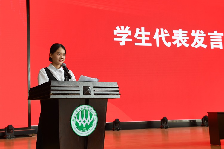 工业与艺术设计学院工业设计191班学生谢文静作为在校生代表发言