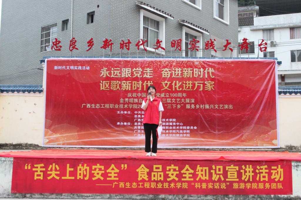 “民以食为天,加强食品安全工作,关系我国13亿多人身体健康和生命安全,必须抓得紧而又紧。”食品安全是家家户户柴米油盐的小事,却是习近平总书记心头牵挂的大事。安全饮食与人们的健康密切相关,为了进一步加强乡村群众安全饮食的意识,使乡村群众认识到良好的饮食习惯对于健康的重要性。pg娱乐电子游戏官网入口旅游与交通管理学院“科普食话说”乡村振兴实践团于2021年7月19日-20日在广西来宾金秀瑶族自治县忠良乡开展主题为“舌尖上的安全”食品安全科普及调研的社会实践活动。