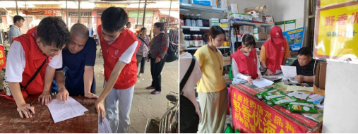 调研结束后,实践队在龙岩乡街口摆上桌凳,放上精心准备的油茶桉树杉木常见病虫害防治宣传单。片刻,老百姓纷纷围上来,咨询相关树种的病虫害防治问题。龙岩乡作为以林业为支柱产业的农业乡,老百姓在种植方面的技术需求十分迫切。在老师的指导下,实践队员们分组行动,向老百姓发放调查问卷,耐心的向老百姓讲解,让老百姓对种植方面有了新的认识,实实在在地学到真本领,同时检验了同学们所学在实践中的应用能力。