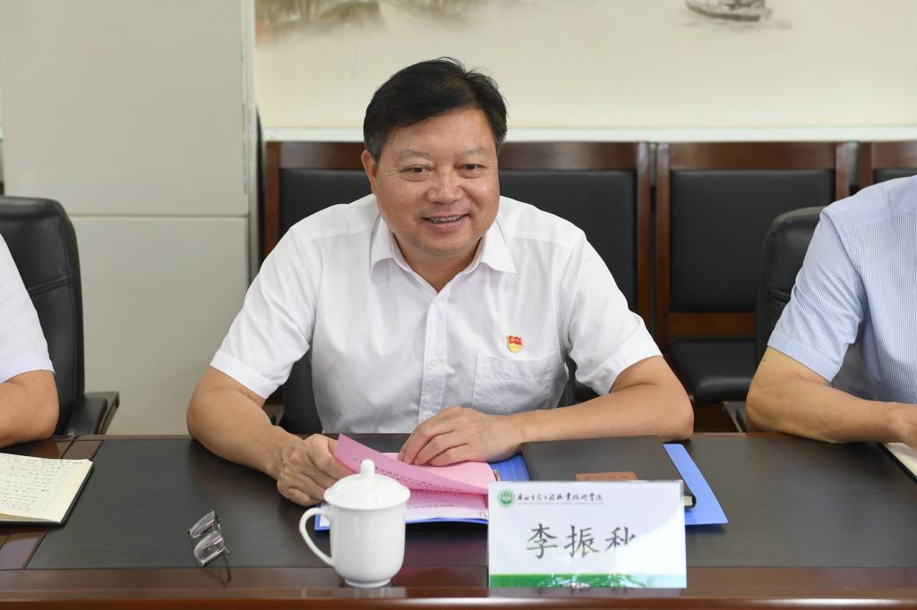 李振秋对张冲一行表示欢迎,并简要介绍了学校的办学历史和特色,着重介绍了近年来学校在抓班子、带队伍,加大人才队伍建设、从严治党抓好廉政建设等方面的有关情况。他表示,通过本次交流,双方会在更广范围、更宽领域开展紧密合作与交流,加强资源互通共享,为践行习近平总书记关于“绿水青山就是金山银山”的相关理论贡献力量。