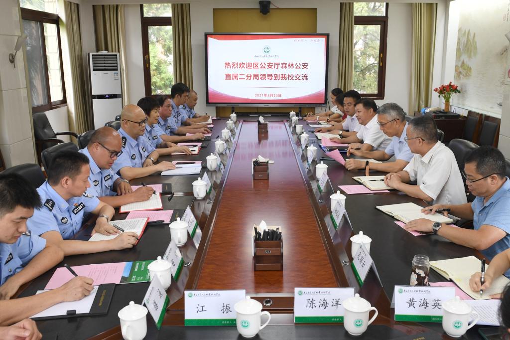 8月30日上午,自治区公安厅森林公安直属二分局局长张冲、政委龙晓林一行到学校交流,学校党委书记李振秋、副校长杨毅出席座谈会,学校相关部门负责人参加会议,座谈会由李振秋主持。