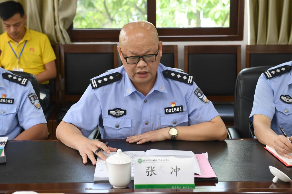 张冲对学校多年来对森林公安工作的支持表示感谢,他向与会人员介绍了分局政法队伍教育整顿活动的基本情况,并就加强保护森林生态资源、人才交流学习、全面开展党支部联建等方面提出了意见和建议。