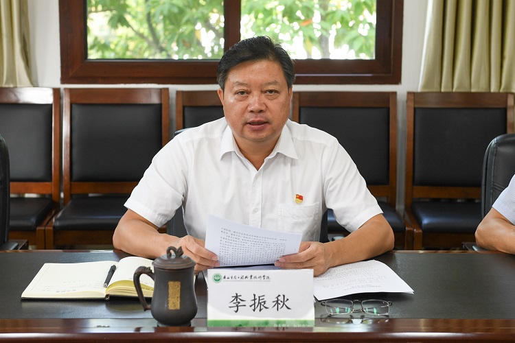 李振秋在领学《关于解放思想担当实干凝心聚力建设新时代中国特色社会主义壮美广西的决定》时,围绕以习近平总书记对广西工作系列重要指示精神引领发展全局,切实践行“两个维护”、深入贯彻新发展理念,着力推动经济高质量发展、强化开放引领,积极服务和融入新发展格局、加强生态文明建设,推动绿色发展、巩固拓展脱贫攻坚成果,加快推进乡村振兴、坚守为民初心,提高人民生活品质、巩固发展民族团结、社会稳定、边疆安宁,坚决守好祖国“南大门”、从党的百年历史中汲取奋进力量,全面加强党的建设、以优良作风确保习近平总书记对广西工作系列重要指示精神落细落实等九个方面展开讲述,强调学校全体党员干部要提高政治站位、增强行动自觉,将各项任务落实到位,确保高效率、高质量完成任务。
