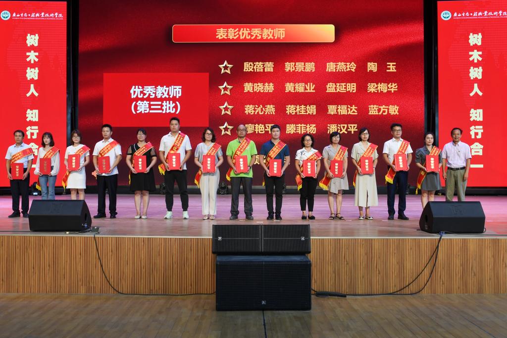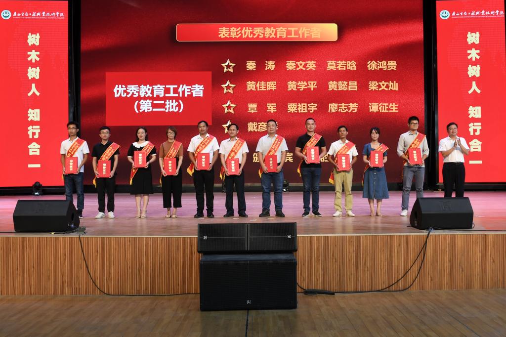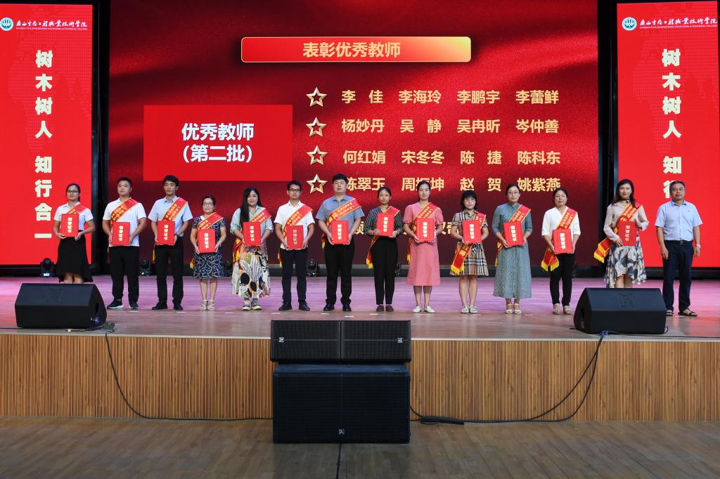 学校领导分别为获得表彰的师德标兵、优秀教师和优秀教育工作者颁奖