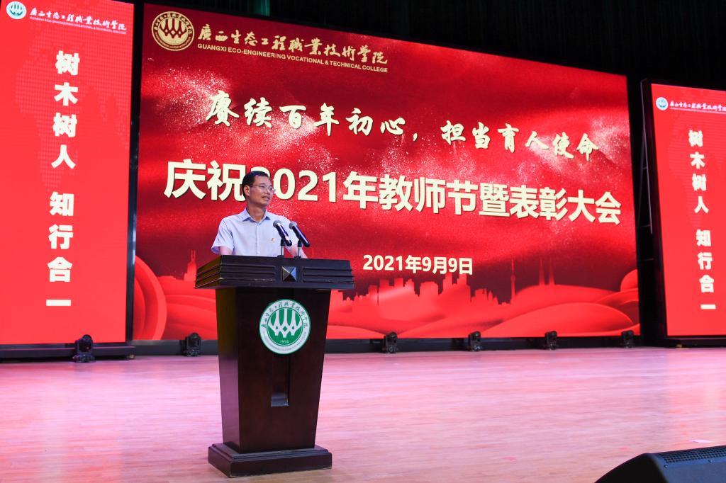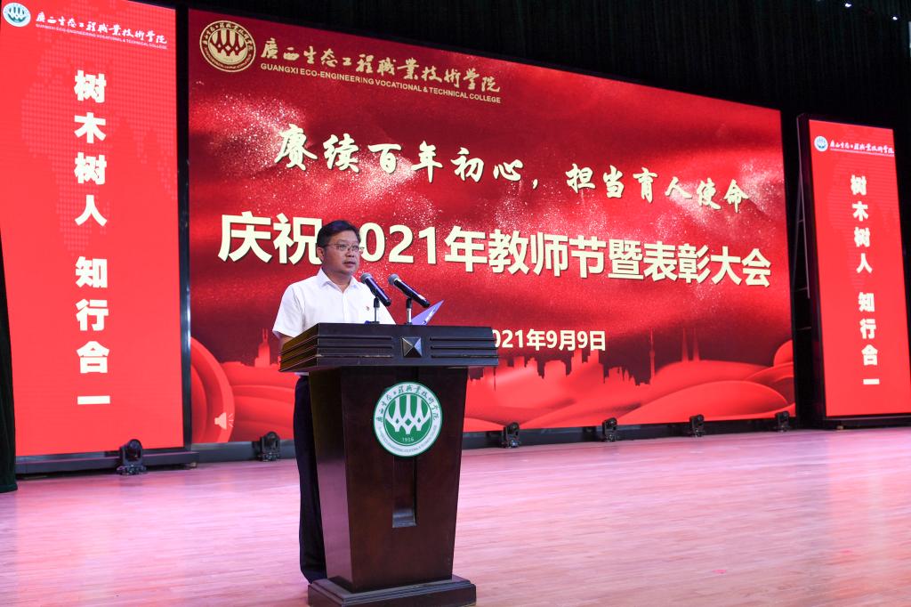 大会在雄伟庄严的国歌声中拉开了帷幕。学校党委书记李振秋代表学校对全体教师致以节日的问候,并带领大家学习了习近平关于教育重要论述。李振秋从学校涌现出的一件件感人事迹,选树的一个个典型代表,号召广大教师“赓续百年初心,担当育人使命”,继续发扬学校“咬定青山不放松”的精神,争做坚定理想信念的好教师,当好学生担当复兴大任的引路人;做有道德情操的好教师,当好学生淬炼品质的的引路人;做有仁爱之心的好教师,当好学生健康成长的引路人;做有扎实学识的好教师,当好学生学好本领的引路人。