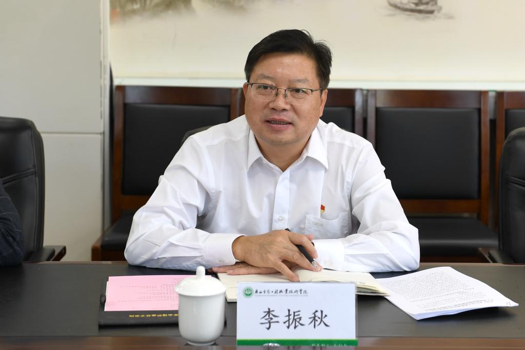 李振秋在汇报中说,pg娱乐严格落实巡视整改主体责任,全面如期完成整改各项任务,截至2021年9月30日,已完成自治区党委第八巡视组巡视整改问题42个、整改任务92项,基本完成整改问题2个、整改任务7项,完成率100%。学校结合党史学习教育,以开展党的教育方针贯彻落实专项行动为抓手,修订完善学校《章程》,制定学校《教育事业“十四五”发展规划》,实施了“深耕计划”“珠峰计划”“鲲鹏计划”三大计划,全面建设特色鲜明高水平职业院校。严格落实全面从严治党战略部署,基层党建工作成效明显。班子成员落实“一岗双责”,扎实推进基层党组织标准化规范化建设,做到了党总支“组织员”100%全覆盖,教师党支部“双带头人”100%全覆盖。目前,学校有全国党建样板支部1个,首批新时代广西高校党建工作样板支部1个,建成自治区级五星党支部7个、四星党支部7个、三星党支部3个,占比57%。