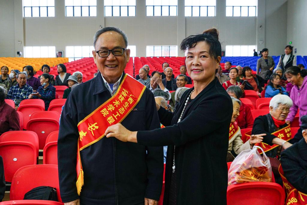 李振秋给80岁以上退休职工颁发“长寿之星”奖