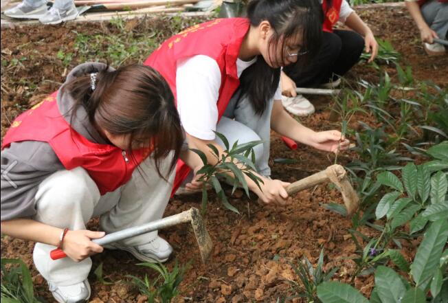 仪式上,pg娱乐团委书记江鸿丰就学校概况、第二课堂建设、志愿服务活动开展情况进行了介绍,与雀儿山公园管理处主任袁茜茜共同为基地揭牌。随后,学校团委与雀儿山公园管理处工作人员在基地现场进行座谈,围绕基地建设、作用发挥等进行充分交流沟通,就参观学习、劳动教育、志愿服务、社会实践等方面达成合作共识。当日,pg娱乐学生志愿者就在基地红豆广场开展松土、整地、分苗种苗拔草等绿化养护劳动活动。