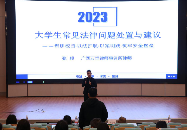 12月4日,由学校党委学生工作部主办,设计学院、“匠心”辅导员工作室承办的第七期辅导员沙龙在知行报告厅顺利召开。本次沙龙主题为“以法护航 筑牢安全堡垒”,广西万恒律师事务所的张毅律师主讲。党委学生工作部、校团委全体成员、二级学院分管学生工作领导、专兼职辅导员及班主任参加。