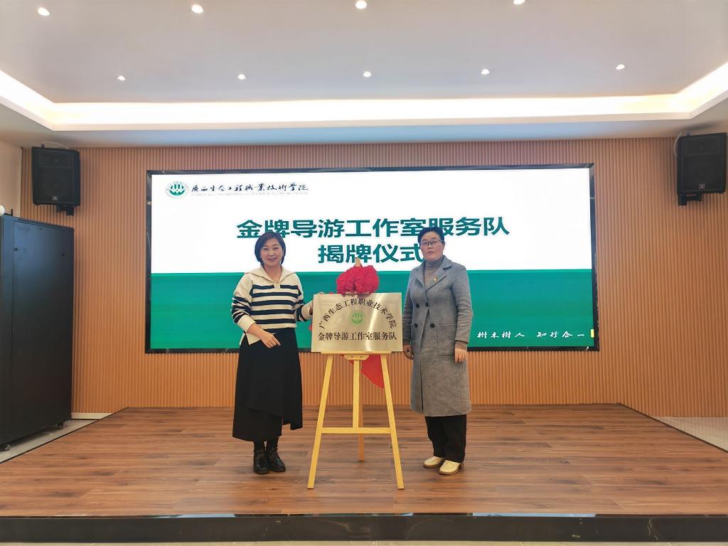 12月5日下午,pg娱乐在旅游虚拟仿真实训基地举行“金牌导游工作室服务队”成立及揭牌仪式,旅游学院副院长薛娟萍,广西金牌导游、柳州市旅游协会导游分会会长朱琳出席仪式,仪式由旅游管理专业负责人钟佩主持。