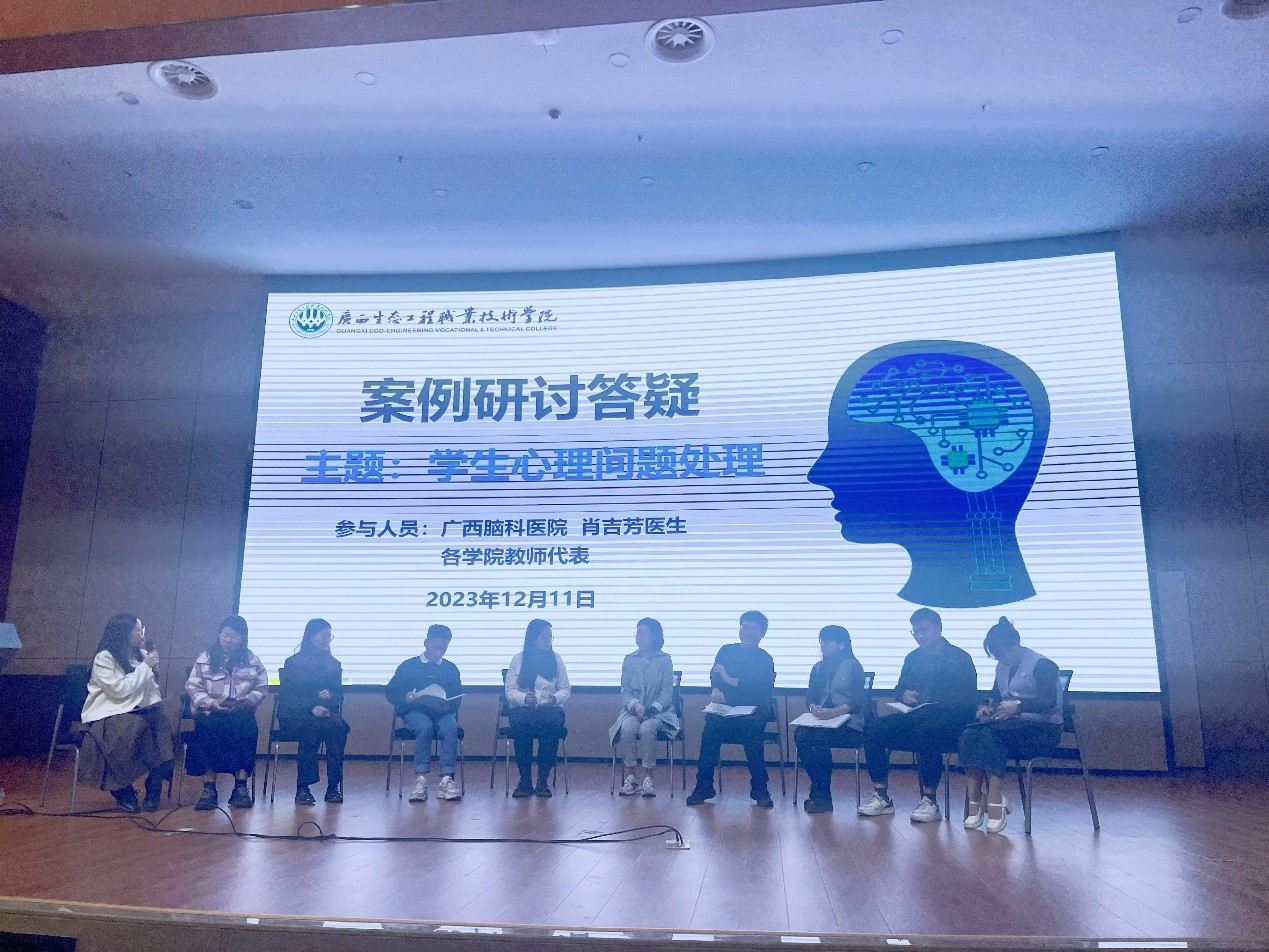 在学生心理问题处置研讨答疑活动中,广西脑科医院心理热线负责人肖吉芳医生与pg娱乐各二级学院教师代表深入讨论了常见学生心理问题的特征及表现,为工作中处理不同类型的学生心理问题提供了专业建议。