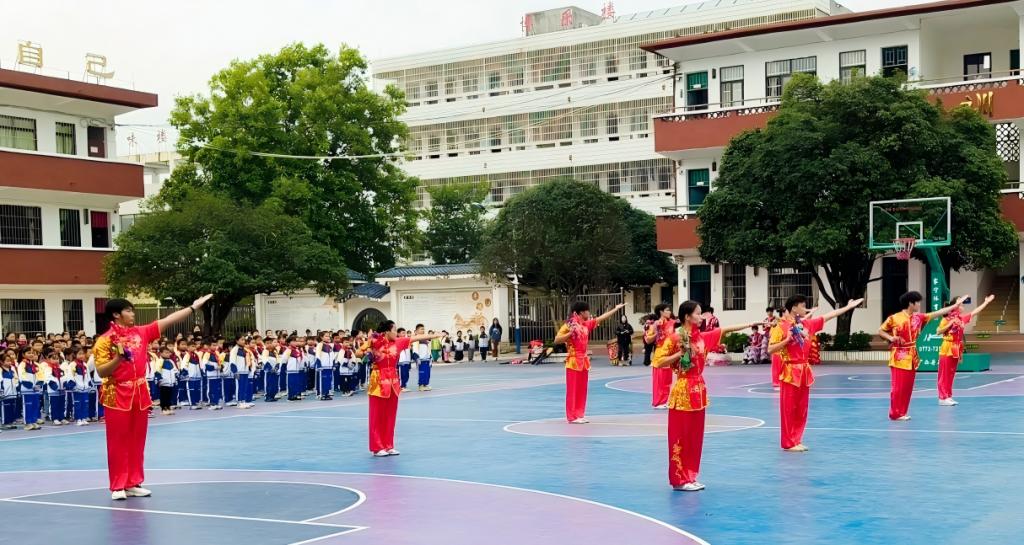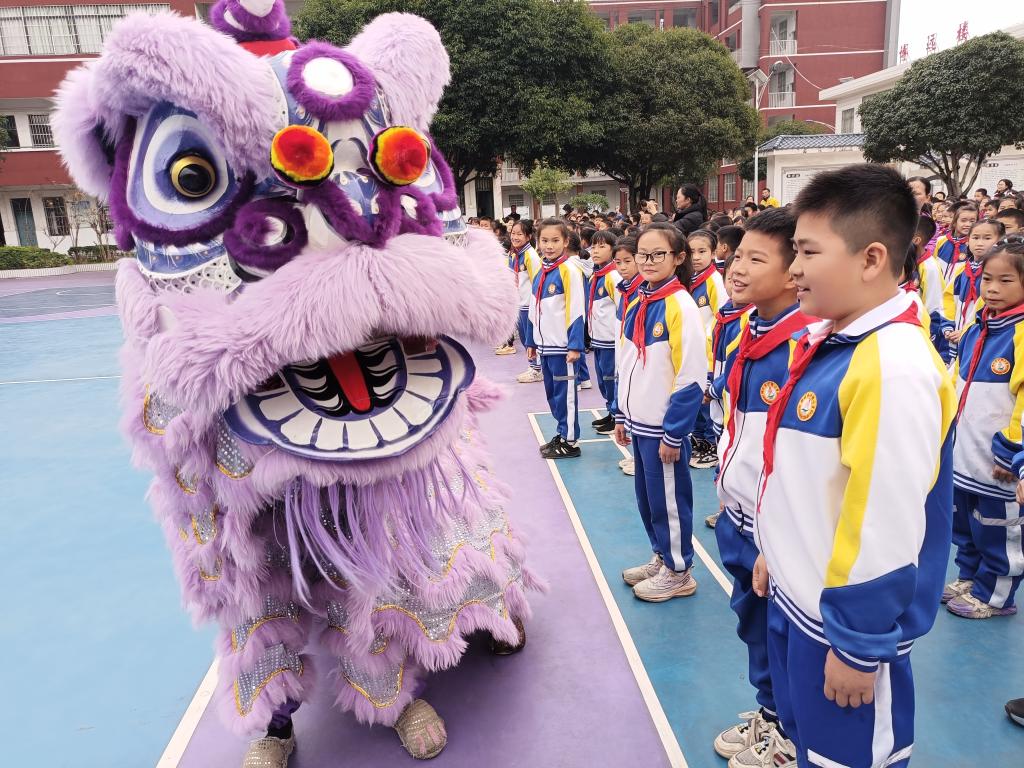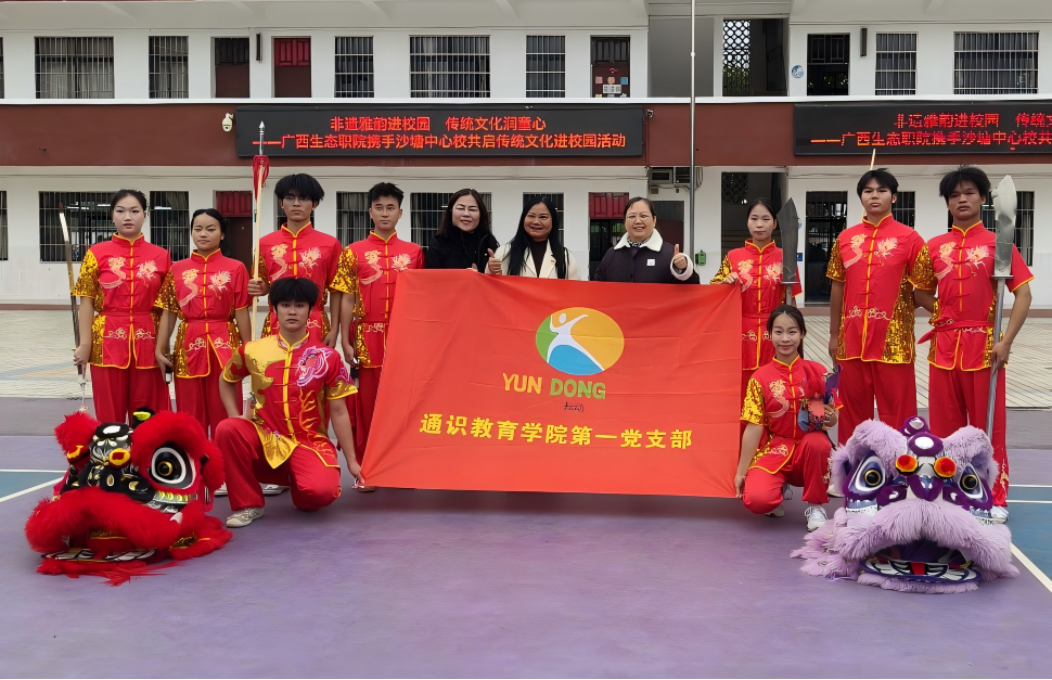 12月10日下午,学校通识教育学院第一党支部书记甘春霞带领学校龙狮队走进校园,开展主题为“非遗雅韵进校园,传统文化润童心”的传统文化进校园活动,柳州市沙塘中心校的校园内洋溢着传统文化的韵味。