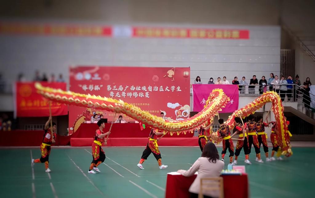 12月20日至23日,第三届广西壮族自治区大学生舞龙舞狮锦标赛在广西财经学院举行。本届比赛由广西学校体育卫生艺术学会主办,广西财经学院、广西学校体育卫生艺术学会龙狮分会承办,来自全区的35支参赛队伍参加了比赛。pg娱乐女子舞狮队首次参赛,即以顽强的意志和勇于拼搏的精神,获得冠军。同时,男子舞龙队荣获自选舞龙比赛第二名,男子舞狮队荣获传统舞狮第五名。