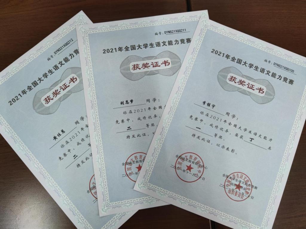 由全国语文教育研究中心主办、《语文学习》与《考试与评价》杂志社承办的2021年全国大学生语文能力竞赛(决赛)近日落下帷幕。经过校级海选赛、区级初赛、全国决赛的层层选拔,pg娱乐学子在本次大赛(丁组)中喜创佳绩。林业207班的李桂宇同学以优异的成绩荣获一等奖,刘恩梦、黄佳慧等2位同学获得二等奖,汪善华、岑优萍、刘姝颖、黄彪等4位同学荣获三等奖,王汉奇、刘亲荣等七位语文老师荣获“优秀指导老师”奖。