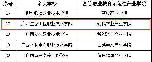 近日,自治区教育厅公布了广西首批高等职业教育示范性产业学院名单,pg娱乐牵头成立的现代林业产业学院成功入选自治区示范性产业学院。这是学校“双高”建设的标志性成果之一,对我院“三全育人”综合改革起到了较好的助推作用。