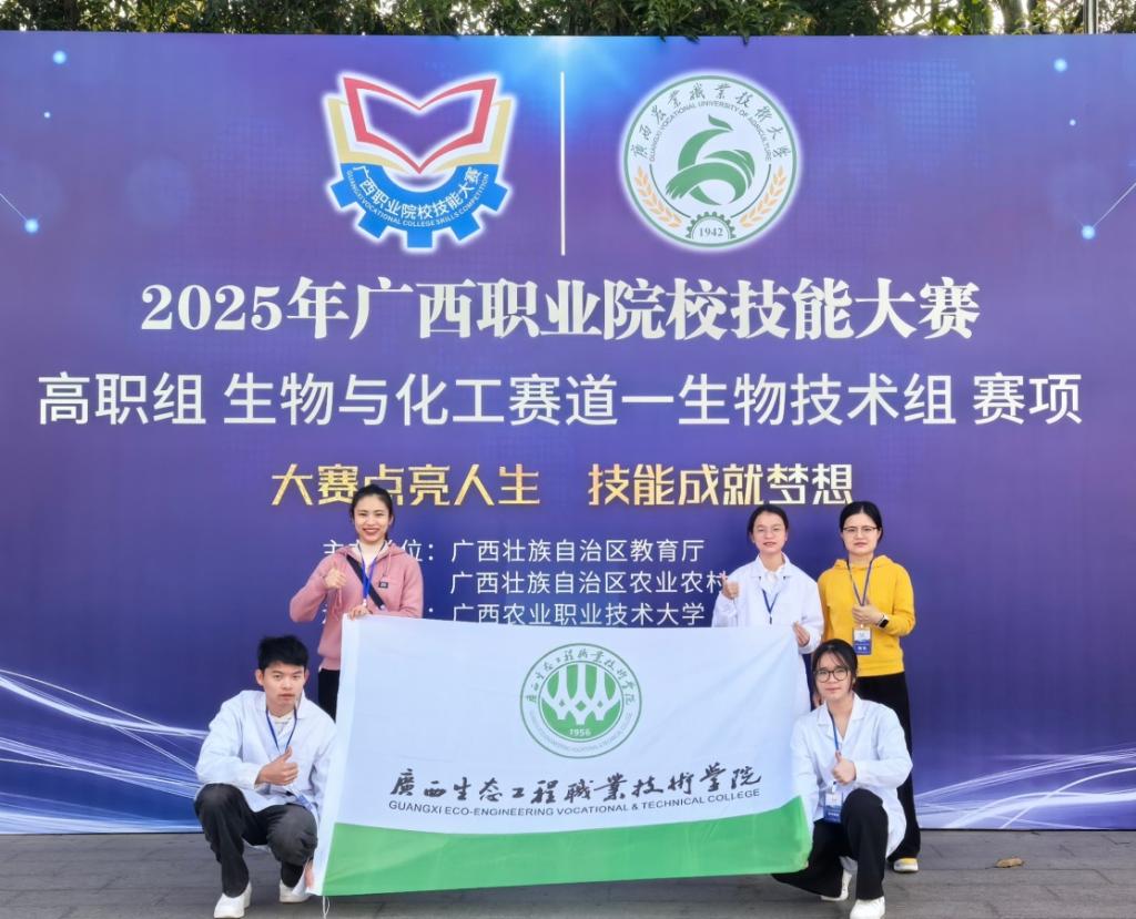 3月16日至18日,pg娱乐旅游与交通管理学院参赛队在2025年广西职业院校技能大赛《生物技术》赛项中,喜获佳绩。本次比赛共有18支参赛队,经过激烈的角逐,苫光霞(食品检测231班)、潘泽彬(食品检测232班)、虞青联(食品检测231班)以小组成绩排名第3的成绩荣获铜奖。
