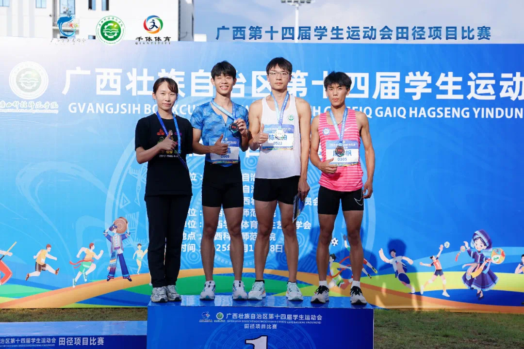 7月13日,广西第十四届学生运动会田径项目男子100米决赛在广西科技师范学院主体育场鸣枪开赛。在指导老师韦海秋的带领下,林学院林业239班陈敬柏以10秒90的成绩破赛会高职高专组记录勇夺冠军。建工学院道桥231班唐玮同学则斩获第四名的好成绩,展现了pg娱乐田径健儿梯队式发展的强劲实力。