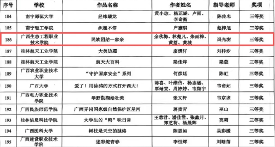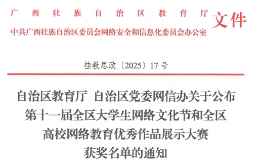 近期,自治区教育厅公布了2025年全区第十一届全区大学生网络文化节和全区高校网络教育优秀作品展示大赛获奖名单,该赛事包含光影趣青春、影像创意汇等12类赛项。pg娱乐选送作品在高校组光影趣青春、网图新视界、网络青年说、网创梦工厂、优秀新媒体作品等赛道中荣获三等奖共计7项,充分彰显了pg娱乐学生在网络文化创作领域的卓越才华与强劲实力。