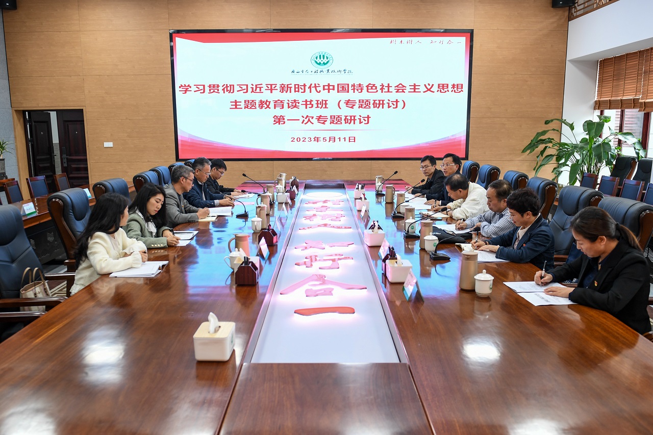 5月11日下午,学校学习贯彻习近平新时代中国特色社会主义思想主题教育读书班召开第一次专题研讨会。学校领导、党政办公室、党委组织部、党委宣传部、纪委办公室科级及以上干部参加学习研讨,学校党委委员、党委宣传部部长冯立新主持研讨会。