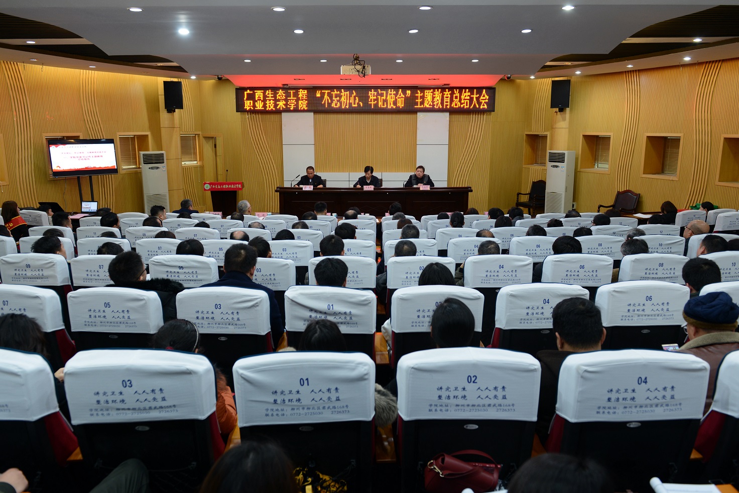 1月14日下午,学院在西校区第二报告厅召开“不忘初心、牢记使命”主题教育总结大会。会议深入学习贯彻党中央和自治区“不忘初心、牢记使命”主题教育总结大会精神,总结我院主题教育工作,对巩固拓展主题教育成果进行部署。学院党委书记、学院主题教育领导小组组长李振秋,自治区第八巡回指导组组长李喜朝在会上讲话。自治区第八巡回指导组组员陈睿婕、林正柏、宁侯杰出席会议。学院领导、中层干部、党员代表共170余人参加会议。学院纪委书记蒋雪刚主持会议。
