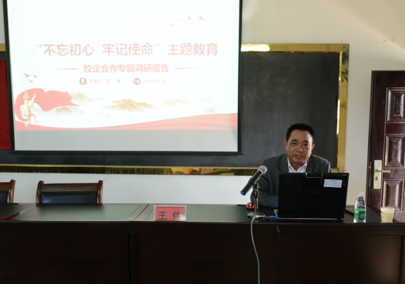 10月29日下午,学院在教学实验林场三楼会议室举办“不忘初心、牢记使命”主题教育专题党课。学院副院长王伟围绕“校企合作专题调研”上专题党课。