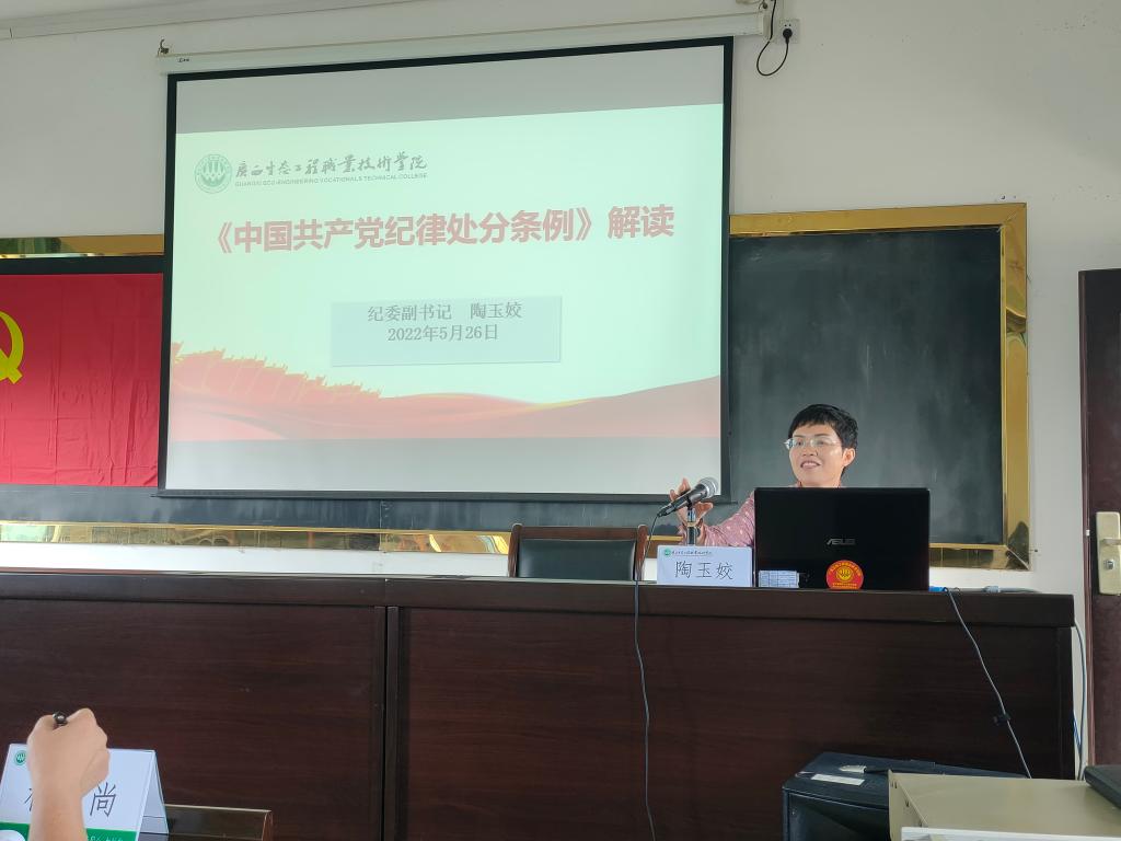 5月26日学校纪委副书记陶玉姣给林场全体职工上法纪教育课