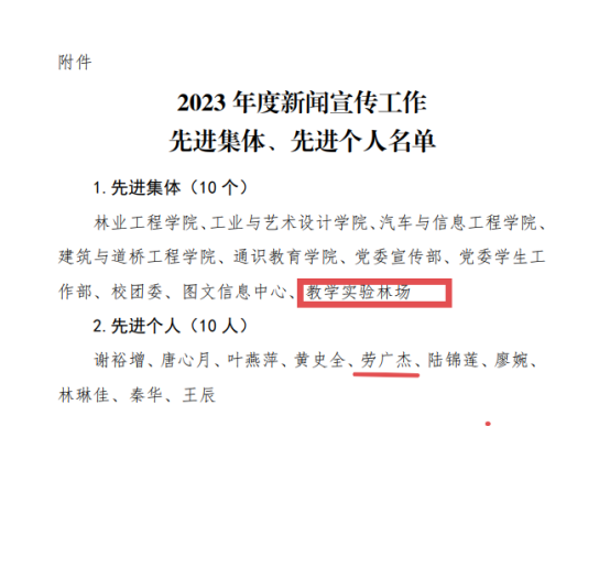 近日,我场在2023年度新闻宣传工作中表现突出,被学校评为新闻宣传工作“先进集体”及劳广杰同志被评为新闻宣传工作“先进个人”。