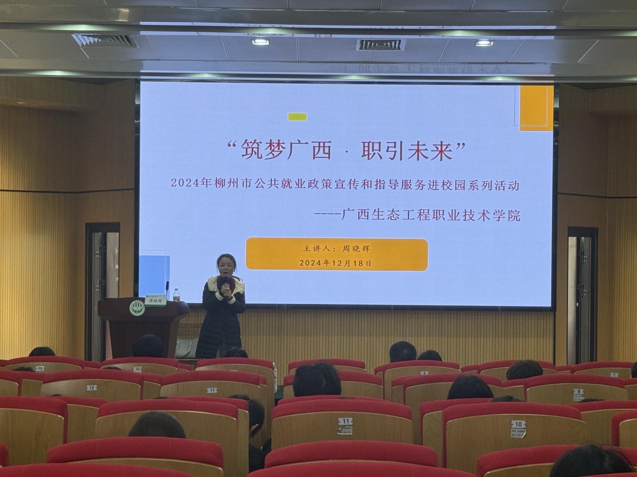 12月18日下午,pg娱乐在西校区求实报告厅成功举办“筑梦广西·职引未来”2024年柳州市公共就业政策宣传和指导服务进校园系列活动。本次活动由柳州市人力资源和社会保障局主办,柳州市人才服务和人事培训考试中心承办。