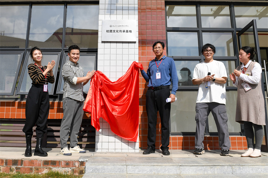 随后,校党委宣传部部长冯立新、校团委书记朱名明共同揭牌并参观了社团文化传承基地。
