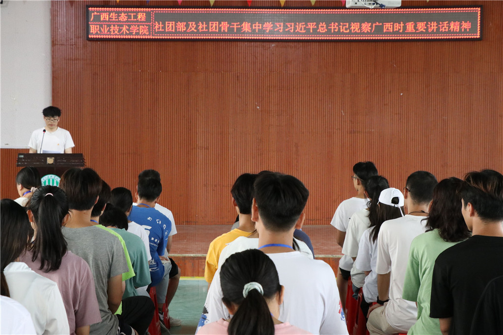 5月27日中午,校团委在东区食堂三楼召开社团骨干会议,专题学习贯彻落实习近平总书记视察广西时的重要讲话精神和重要指示精神。校团委老师、校社团部全体成员及各社团骨干成员参加会议。