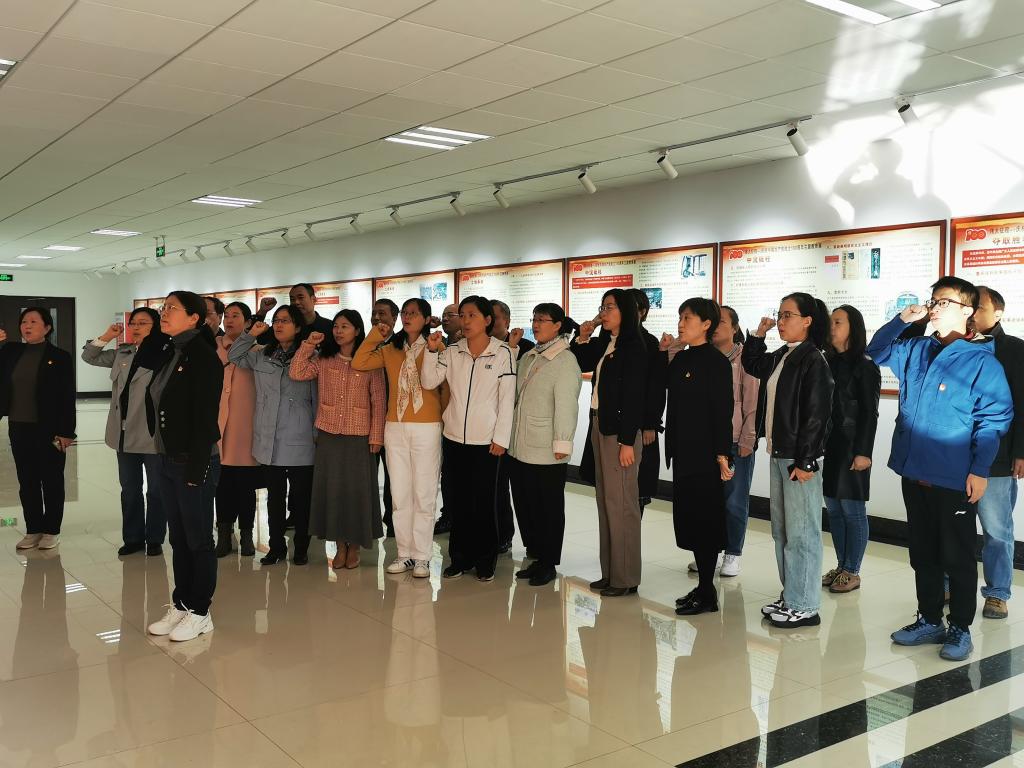 漫步信仰长廊,追随先辈的足迹,用心感受党的峥嵘岁月。文学院教师党员佩戴党徽,整齐列队,神情庄重地举起右手,面向信仰长廊的入党誓词墙庄严宣誓。“我宣誓,我志愿加入中国共产党,拥护党的纲领,遵守党的章程……永不叛党。”铮铮入党誓词响彻在信仰长廊,既是对二十大胜利召开的期盼,也表达了教师党员传承红色基因、时刻不忘初心和永远奋斗前行的决心。重温入党誓词,就是要激励大家不忘初心、牢记使命,坚定“一心向党”的忠贞信仰,坚守“一心为教”的赤子情怀。宣誓活动结束后,教师党员共同参观光荣党史历程展览,汲取精神力量。