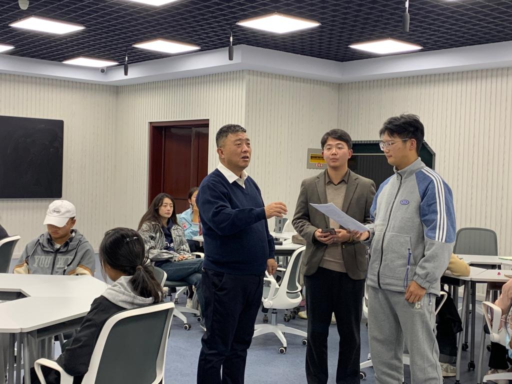 过岩松主席以自身丰富的朗诵经验为始,向同学们介绍了朗诵的基本技巧。他指出,朗诵是把文学作品转化为有声语言的艺术创作,朗诵者要把文章中所表现的画面通过朗读中的恰当停连、语气转换等呈现出来,让听众听到这段朗读能够联想到文中所表现的画面,给予听众更丰富的想象空间。同时,他又从朗诵艺术的综合性、文学性、创作性、欣赏性等方面做了分析讲解,让大学生们对朗诵艺术有了更深刻的认识。此外,他还就朗诵中的气息沉稳、自然发声、情景再现、轻声出重句,如何解决朗诵中尾音下垂、平、端、僵等问题做了细致讲解和现场指导,并在现场和大学生一起共读《虞美人》《乡愁》《再别康桥》等文学作品,在逐字逐句示范中让学生品味抑扬顿挫的用声变化。过岩松主席高度评价了现场学生们参与互动的积极性,并对他们给予了美好期许。