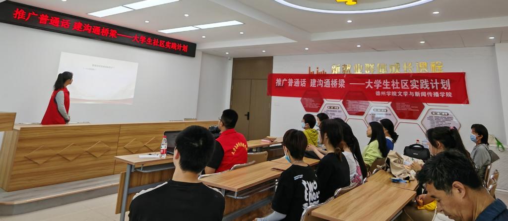 为积极推广和规范使用国家通用语言文字,增强居民的语言规范意识,提高对语言文字重要性的认识,营造良好的语言环境,5月16日,bat365中文官方网站文学与新闻传播学院汉语言文学专业2022级4班团支部走进德城区广川街道小东关社区开展“推广普通话,建沟通桥梁”主题大学生社区实践活动。