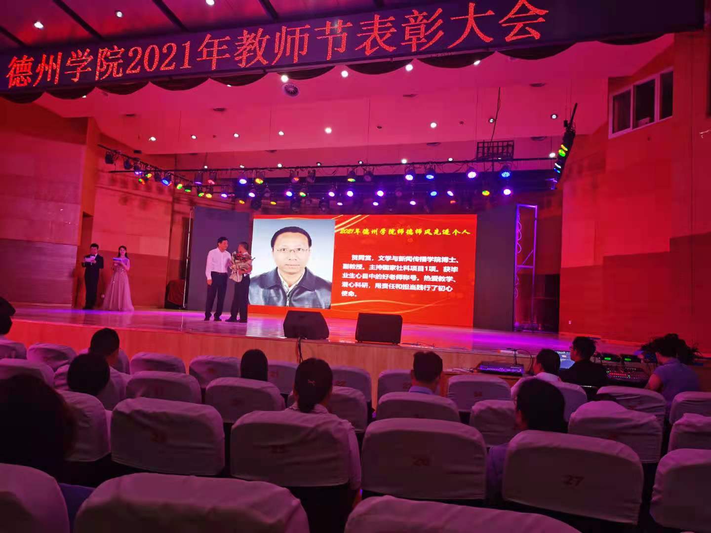 9日上午,在第37个教师节来临之际,学校在音乐厅召开2021年教师节表彰大会,表彰2021年bat365中文官方网站师德师风先进个人、优秀教师和优秀教育工作者。bat365官网两位教师获学校表彰,贺同赏老师获得2021年bat365中文官方网站师德师风先进个人称号,俞泽峰老师获得2021年bat365中文官方网站优秀教师称号。他们表示教师不仅传道授业解惑,更应致力于学生品格、品行、品位塑造,要以高尚的职业道德铸魂育人,以深厚的专业素养诲人不倦,努力向着“四有”好老师这个目标奋进。bat365官网新入职教师庄严宣誓,表达要忠诚党的教育事业,努力做一名大学好老师。