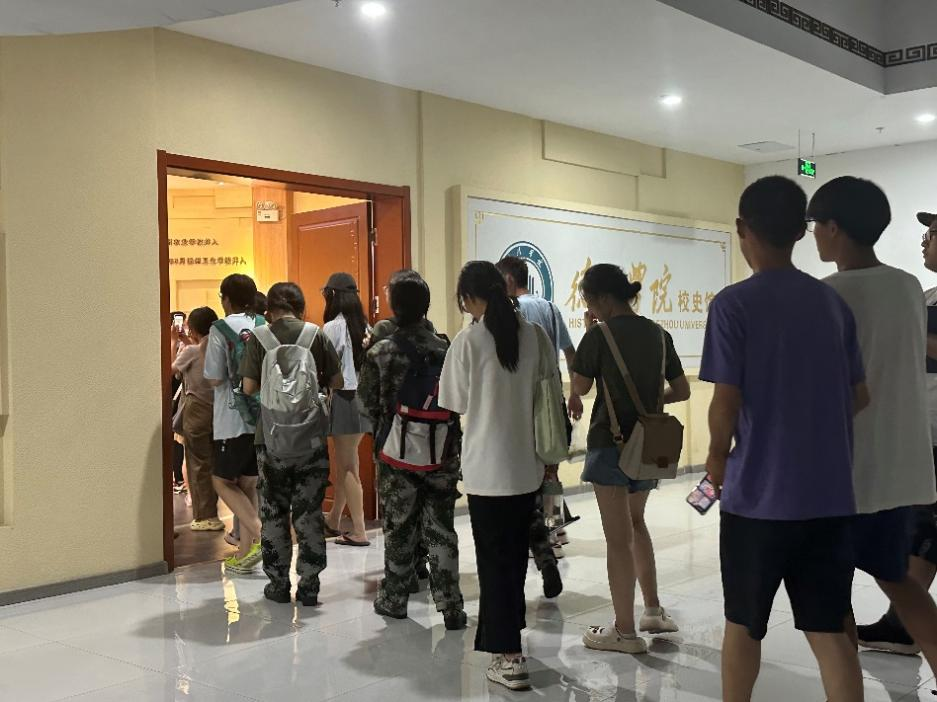 晚九点开始,文学院2023级新生在学生会成员及校史馆讲解员的带领下排队有序进入校史馆。