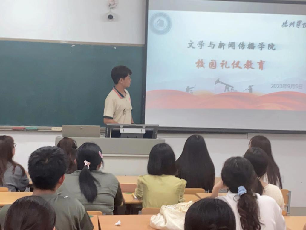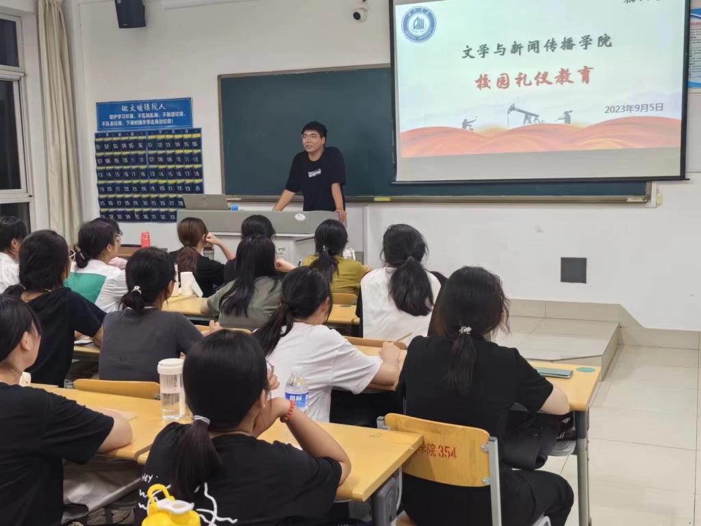为进一步加强校园精神文明建设,提高全体学生的文明水平和礼仪素养,促使学生养成良好的行为习惯,9月5日,文学与新闻传播学院“规礼仪礼节,展华夏风采”校园礼仪教育专题讲座在博文楼322举行。