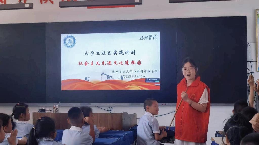 为深入学习宣传贯彻习近平新时代中国特色社会主义思想和党的二十大精神,引领同学们更好地了解社会主义先进文化以及诗文朗诵的相关知识,领悟朗诵魅力,5月16日,bat365中文官方网站文学与新闻传播学院社会主义先进文化宣讲团走进bat365中文官方网站附属第一实验小学开展大学生社区实践活动。