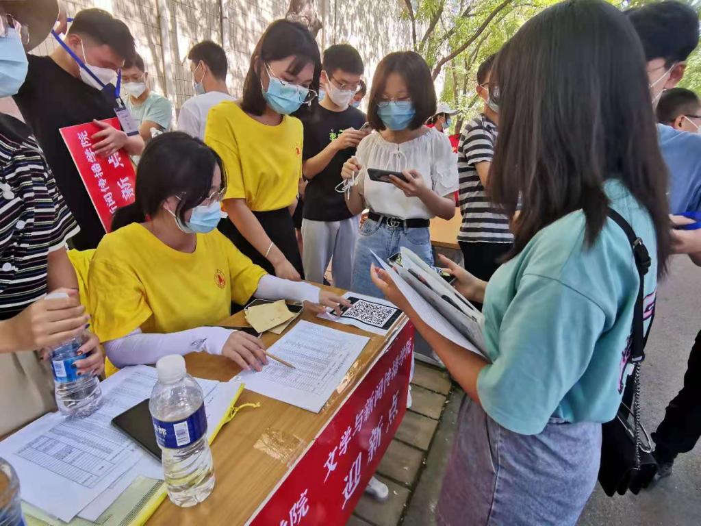 疫情防控形势依然严峻,为响应学校开学新生错峰分批次报到的要求,今年部分高年级同学提前返校,参与迎新志愿服务工作。迎新工作中,学生党员、入党积极分子积极带头,优秀团员切实发挥后备军作用,学生干部热忱服务,暖至人心。他们身穿黄色上衣,烈日炎炎下等待着每一位新生踏入德院校园,志愿者们细心地引导新生做核酸检测、买饭送饭,指引新生完成报到流程、为新生搬运行李、送新生进入明亮干净的宿舍。即使天气热,任务重,但志愿者们的热情从未消减。学生志愿者们身着黄色上衣,成为迎新站点最靓丽的风景线。