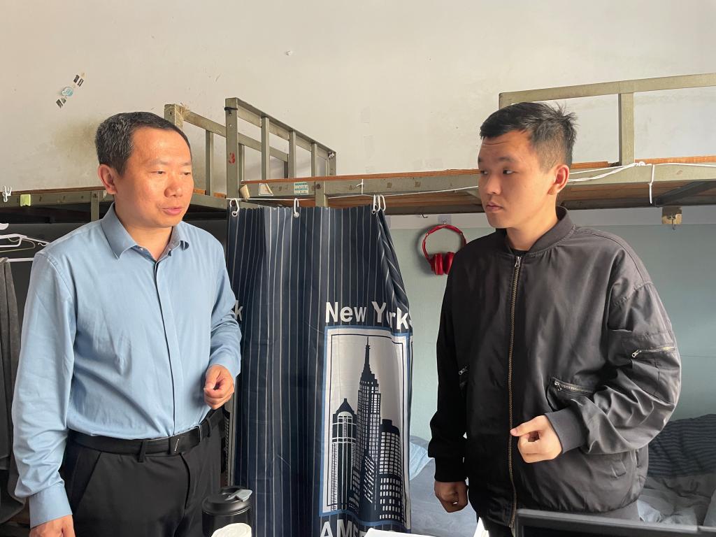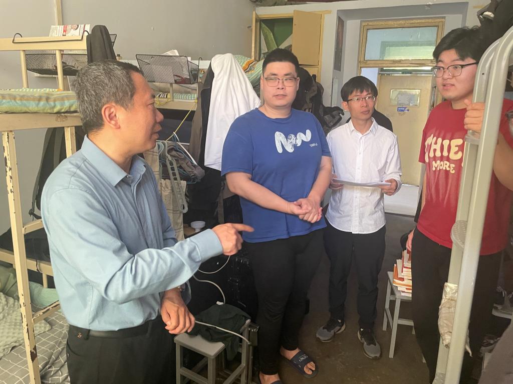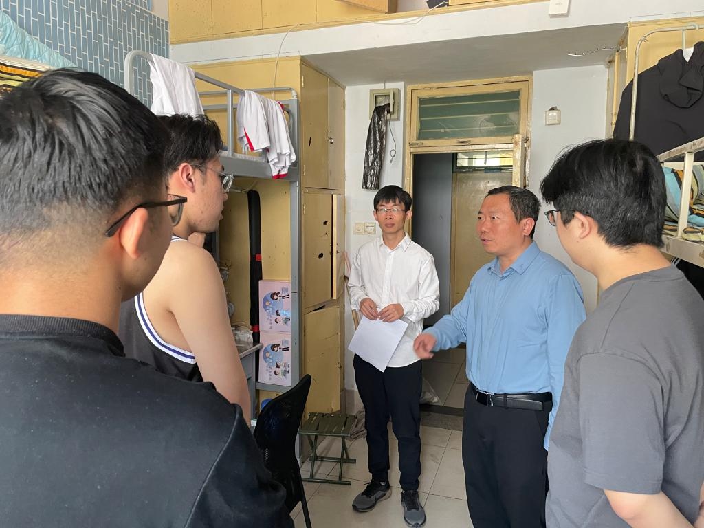 为强化假期安全管理与人文关怀工作,2025年5月1日,bat365中文官方网站党委书记仲冲、党委副书记鞠晶晶率领辅导员开展学生宿舍专项走访,系统开展安全隐患排查,并深入进行留校学生慰问工作。