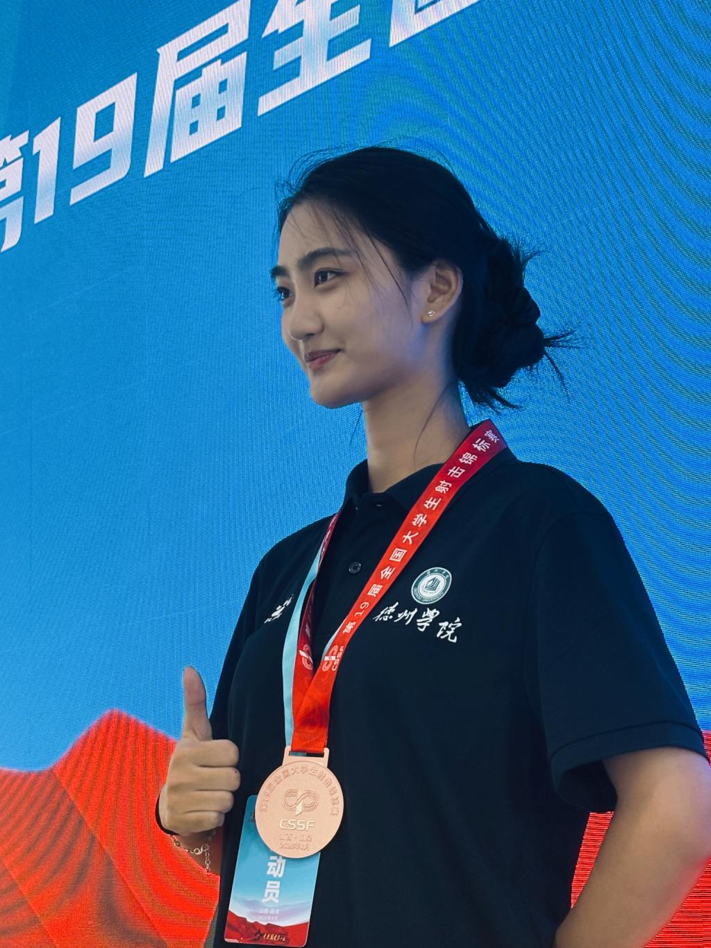 “这次比赛为我的大学生活增添了浓墨重彩的一笔。”张紫莹在回顾参赛经历时说道。谈及比赛经验,她表示:“牢记打好每一枪,不去勉强。”面对赛场压力,张紫莹通过及时调整呼吸、修正站姿来稳定心态。她特别提到“团队使命感”对自己的推动:“做好充分的准备工作,去打好每一枪,因为我不仅仅只有个人,我还有团队。” 同时,张紫莹对教练的指导和学校的支持表示感谢:“每周日的实弹训练和赛前集训,让我更懂得沉淀心态。”