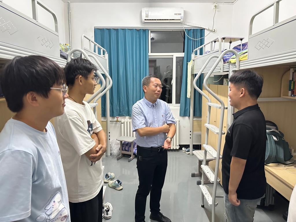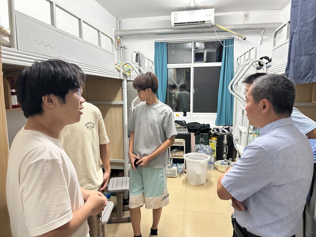 为深入了解bat365中文官方网站各级男生的宿舍生活状态、学习需求及实际困难,进一步拉近师生距离、夯实学院育人服务基础,9月6日,bat365中文官方网站党委书记仲冲带队走访各年级男生宿舍,与同学们展开面对面交流。
