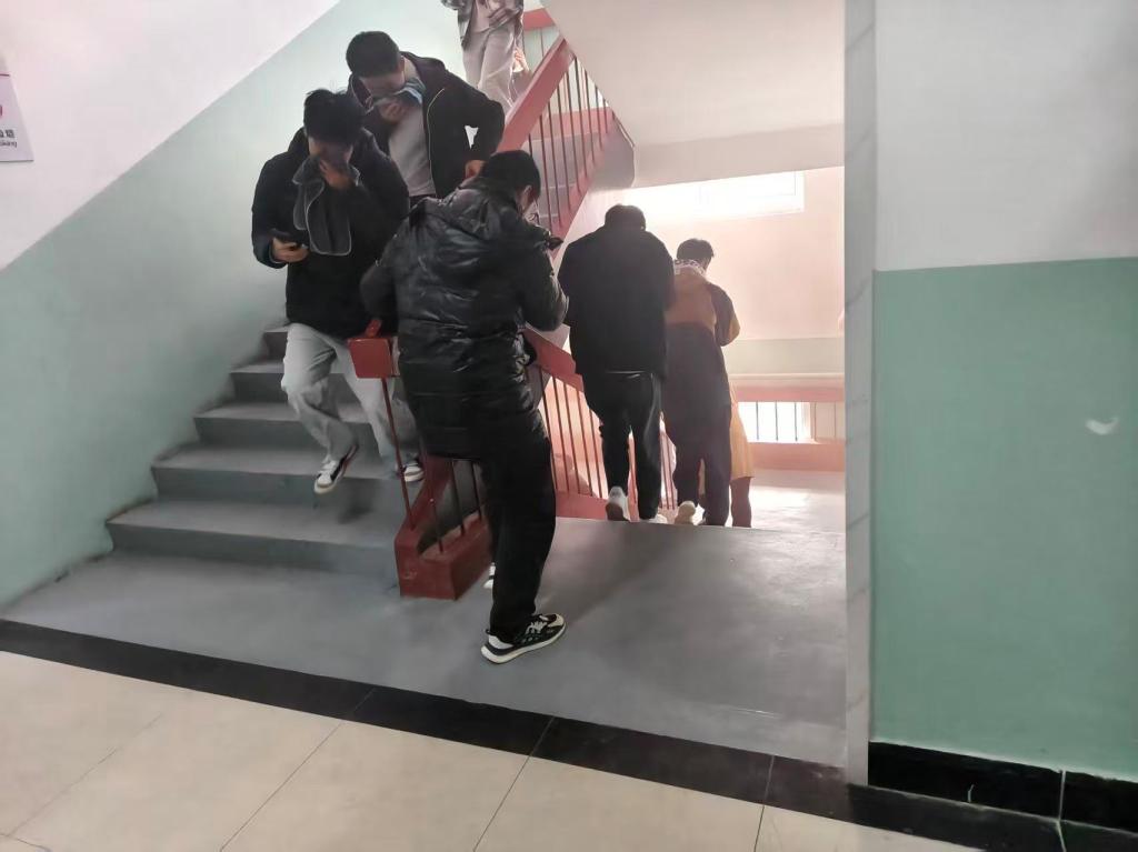 急促的火灾警报声响起,演练正式启动。本次演练模拟6号楼7号楼突发“火情”现场浓烟弥漫、火势迅速蔓延。参与演练的同学们立刻响应,取出湿毛巾捂住口鼻,遵照“弯腰、有序、小跑”指令,在老师带领下以宿舍为单位沿指定通道快速疏散。全体人员均安全撤离至指定集结区域,撤离过程秩序井然、高效规范,无慌乱推挤情况。学校保卫处负责老师结合演练全程复盘总结,肯定师生应急表现,明确后续完善细节。