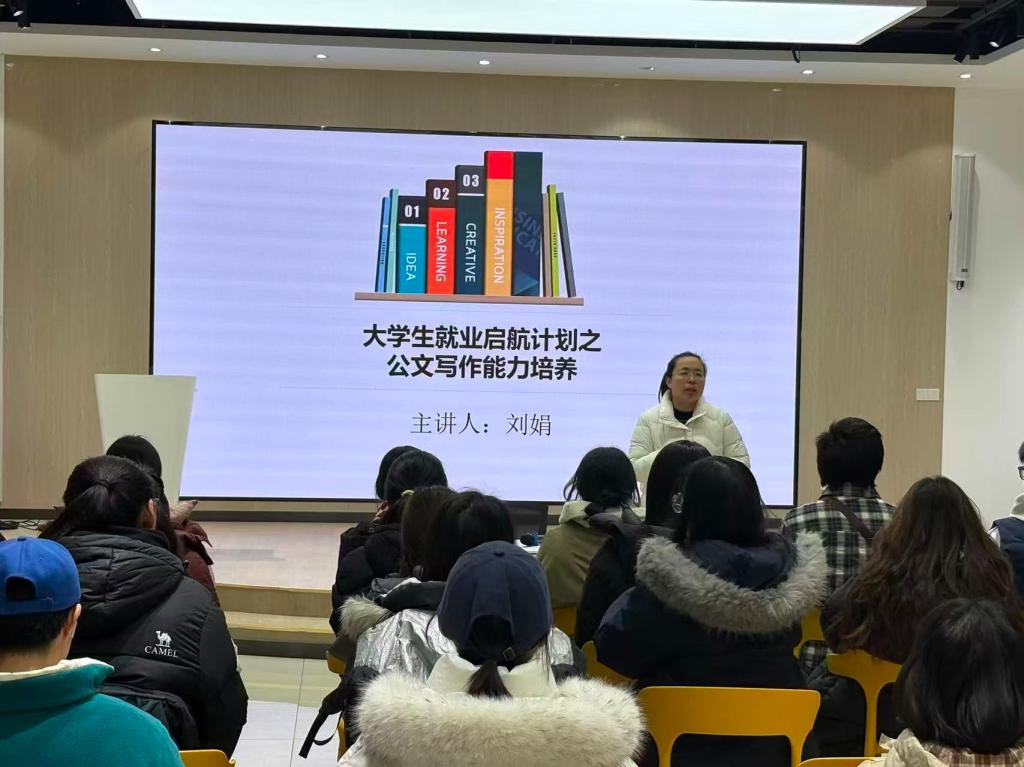 为提升学生公文写作素养,夯实就业核心竞争力,bat365中文官方网站依托“大学生就业启航计划”,特邀刘娟老师开展公文写作能力培养专题讲座,学院众多学生到场参与学习。