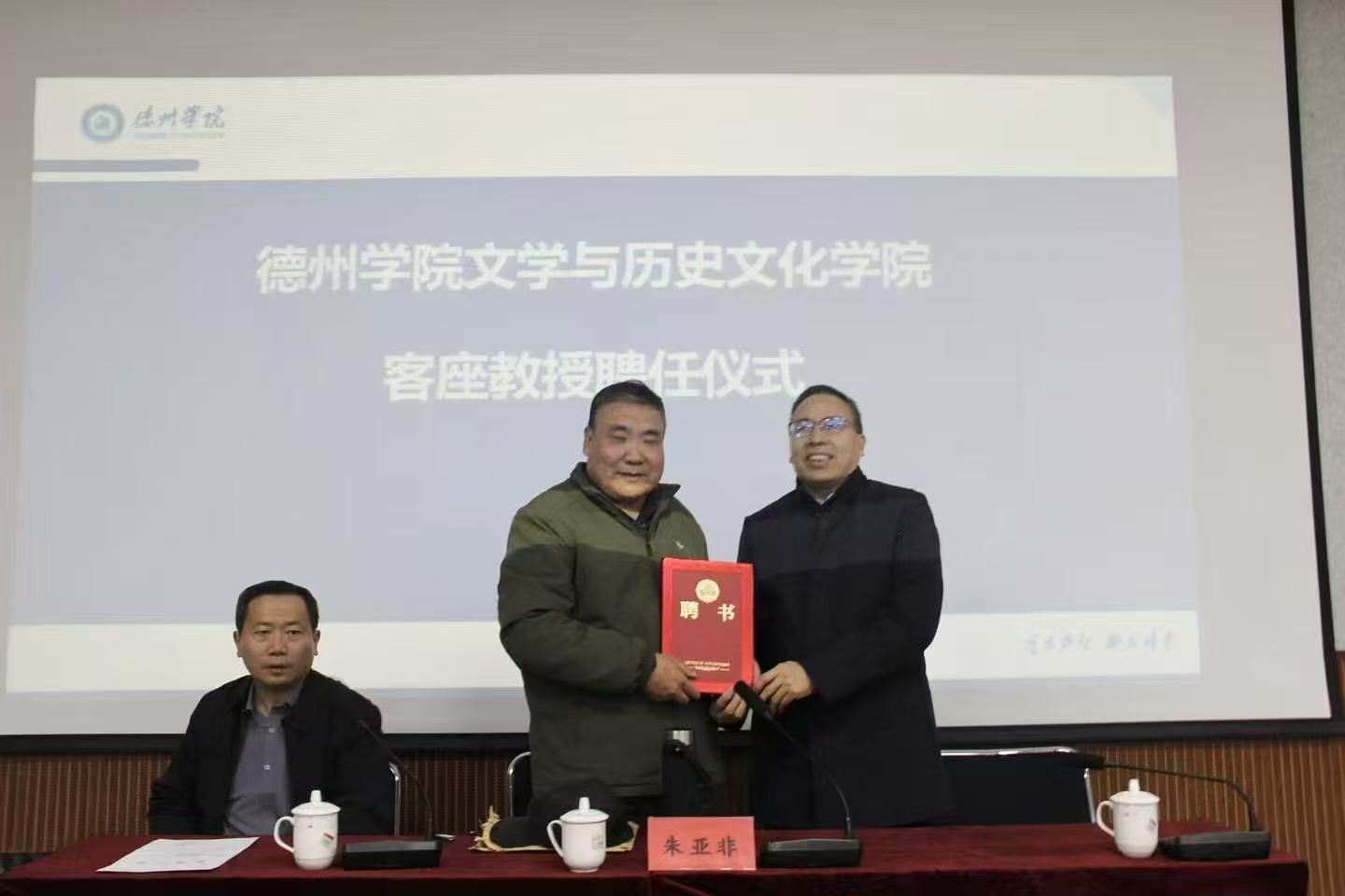 学院在博文楼举行客座教授聘任仪式,校党委委员、副校长刘印房教授为朱亚非颁发客座教授聘书,学院党委书记仲冲、历史学系主任乔毅等出席活动。