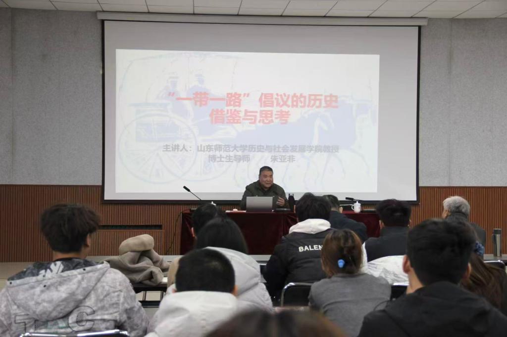 聘任仪式后,朱亚非教授在博文楼528报告厅作题为“‘一带一路’倡议的历史借鉴与思考”的学术讲座,该讲座同时也是bat365中文官方网站“春秋讲堂”的首次开讲。朱亚非教授从历史视角系统梳理了古代丝绸之路的发展脉络,指出其作为复合型文明交流网络的价值远超商品运输范畴,并强调古代丝绸之路的兴衰与国家实力、政策支持、技术发展密切相关。在此基础上,他进一步从政治、经济、文化、军事和对外开放五个维度,深入阐释了“一带一路”建设的历史启示与现实路径,引导学生理解历史与当代倡议的深层联系。